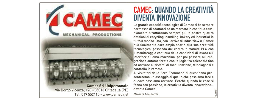 To the visitors of the Ecomondo fair this year, we will present a taste of what we can do and where we can arrive. Because when things are done with passion, creativity becomes innovation... becomes Camec.